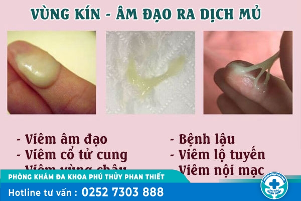 Nếu âm đạo tiết ra rất nhiều dịch mủ kèm theo dấu hiệu bất thường như đặc, loãng; có màu sắc khác lạ như vàng, trắng, xám, nâu hoặc đỏ hồng do lẫn máu; mùi hôi khó chịu,... Đó có thể là triệu chứng của bệnh lý cần đến cơ sở y tế để bác sĩ thăm khám, điều trị.