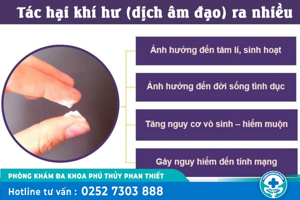 Hiện tượng khí hư ra nhiều do bệnh lý còn dẫn đến nguy cơ tắc ống dẫn trứng, viêm dây chằng... hoặc thậm chí là không thể mang thai, nguy cơ vô sinh.