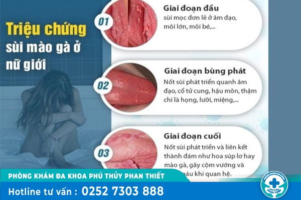 Đây là bệnh lây truyền qua đường tình dục do virus HPV gây ra khiến âm đạo nổi mụn cóc, mụn thịt, mụn sùi có màu hồng nhạt hoặc màu đỏ, không gây đau, không ngứa. Sau đó, chúng to dần và liên hết với nhau thành từng mảng lớn dễ bị trầy xước khi bị cọ xát, gây ngứa ngáy, khó chịu. Nữ giới còn thấy khí hư ra nhiều, đau rát; chảy máu khi quan hệ tình dục,...