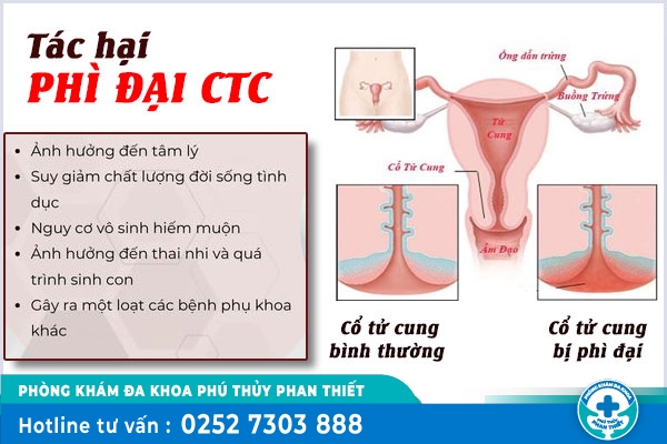 Phì đại cổ tử cung là một trong những bệnh phụ khoa thường gặp. Nếu không điều trị kịp thời, bệnh có thể dẫn đến một loạt những bệnh lý phụ khoa khác, thậm chí còn ảnh hưởng đến việc sinh đẻ của phụ nữ và nhiều nguy hại khác. Cụ thể như: