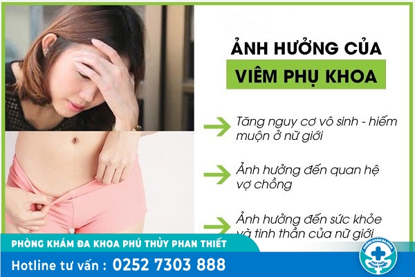 Theo chia sẻ của các chuyên gia Phòng Khám Phụ Khoa Phú Thủy Phan Thiết, bệnh phụ khoa không chỉ gây ra những triệu chứng khó chịu mà còn tiềm ẩn nhiều nguy hiểm. Nếu điều trị không tốt, chị em có thể chịu nhiều ảnh hưởng như: